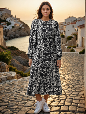 Women Black & White Printed Midi Dress