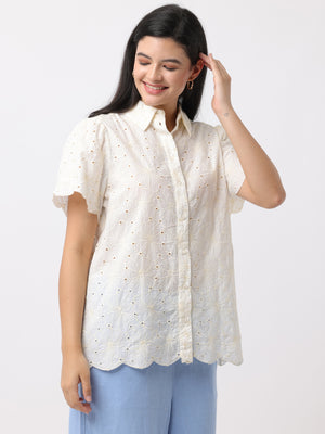 Women Cream Floral Shiffli Top
