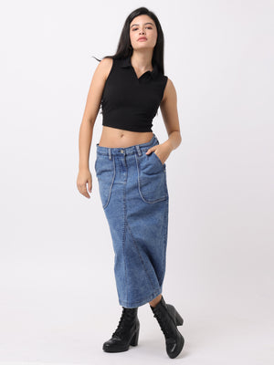 Women Blue Regular Fit Denim Skirt