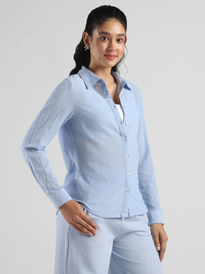 Women Blue Textured Regular Fit Shirt