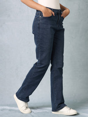 Women Navy Blue Straight Fit Jeans