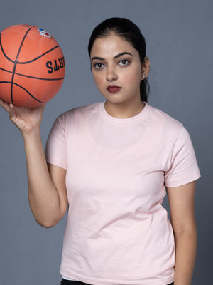 Women Round Neck Pink Tshirt