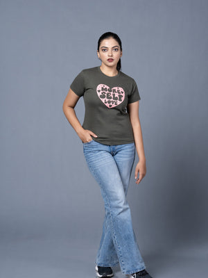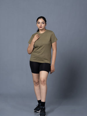 Women Round Neck Olive Tshirt