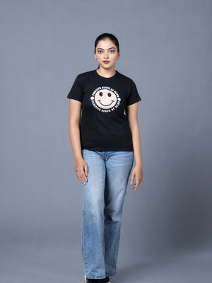 Women Black Cotton Tshirt
