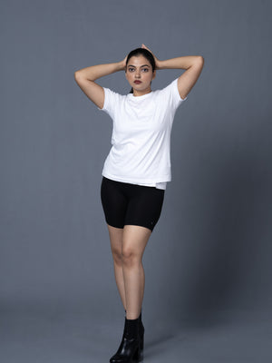 Women White Round Neck Tshirt