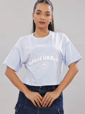Women Blue Round Neck Tshirt