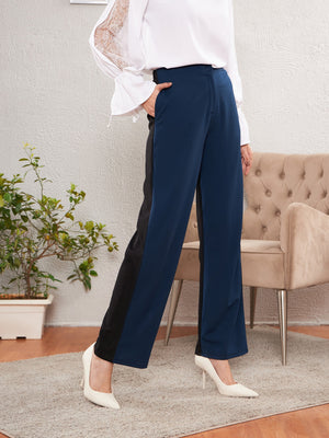 Women Navy Cheetah Scuba Bell Bottom Pants