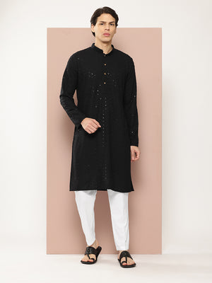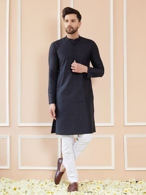 Men Charcoal Ethnic Motifs Silk Jacquard Straight Kurta