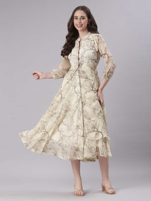 Men Cream Embroidered Chikankari Rayon Straight Kurta