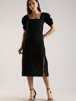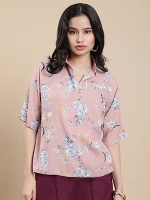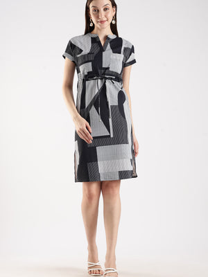 Women Blue Poplin Floral Ruffle Neck Smocked Skater Dress
