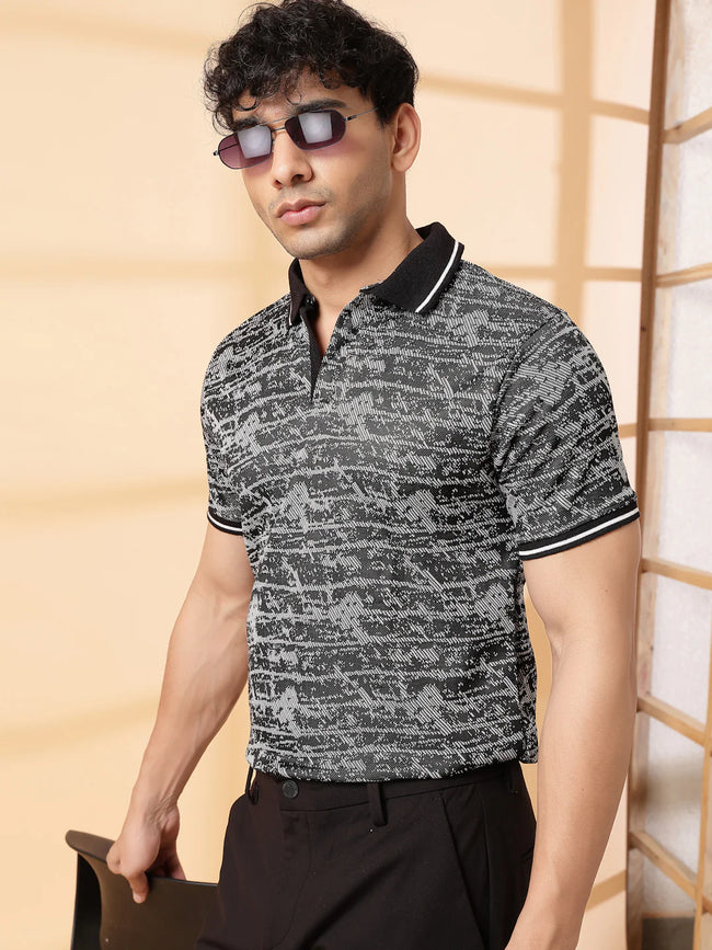 Step out in style with the Men Abstract Jacquard Polo HighLow TShirt