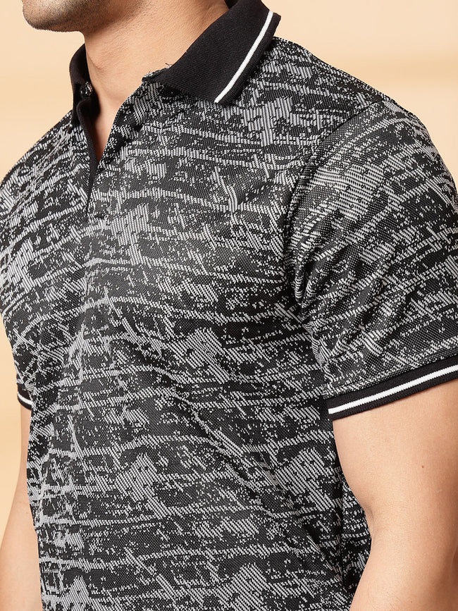 Men Abstract Jacquard Polo Highlow T-Shirt