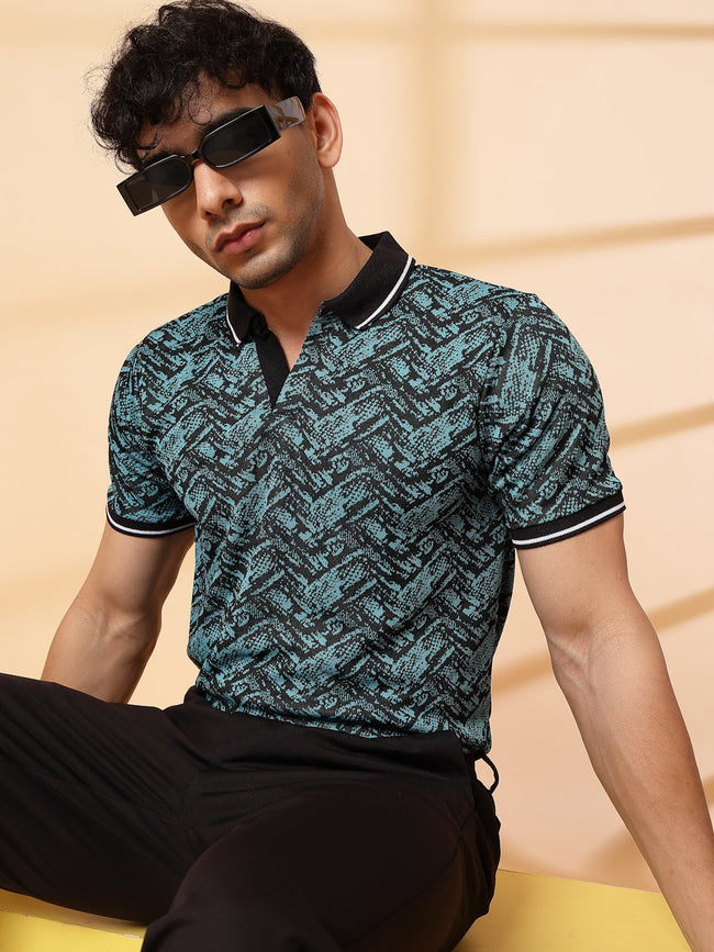Step out in style with the Men Abstract Jacquard Polo TShirt