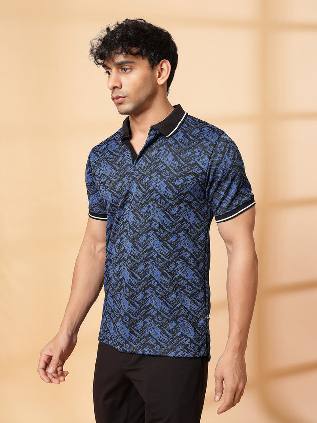 Step out in style with the Men Abstract Jacquard Polo TShirt