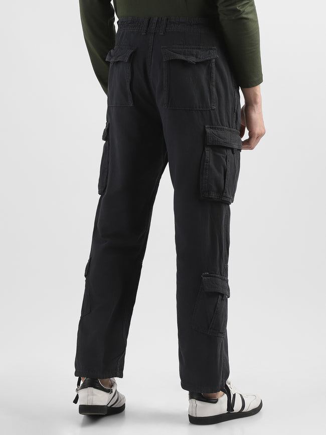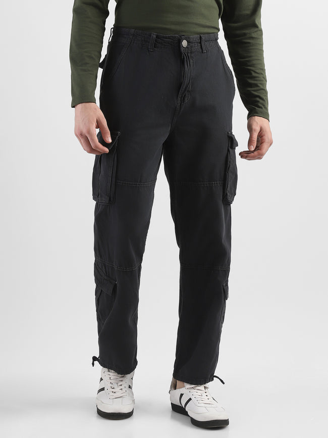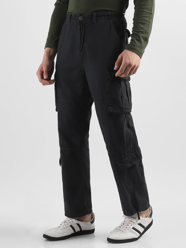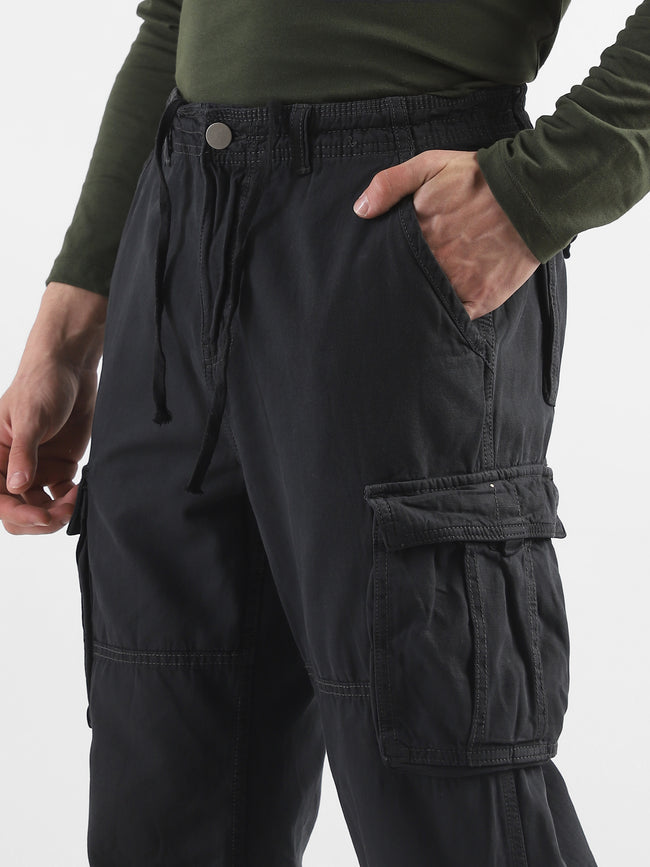 Men Black Cotton Blend Cargo Pants with 8 Pockets