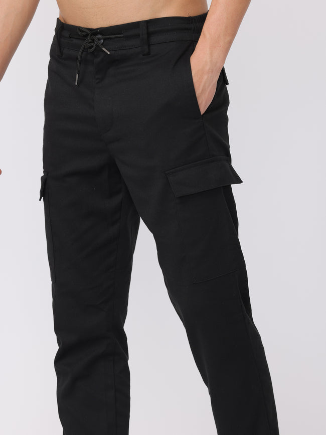 Men Black Regular Fit Cargo Pants