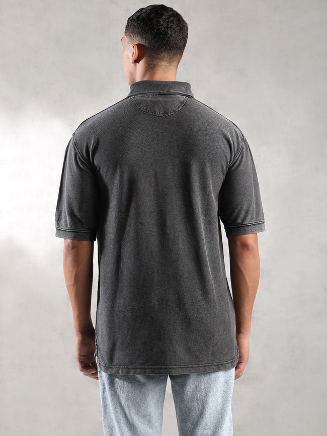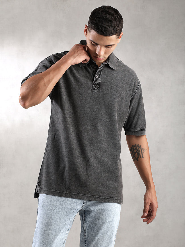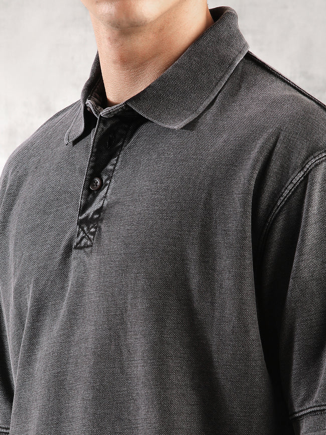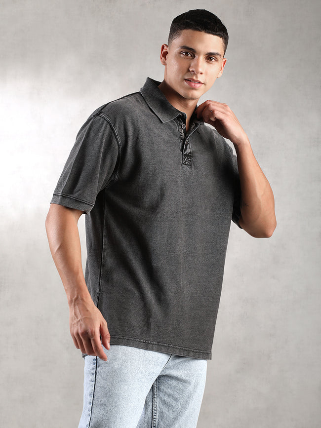 Men Charcoal Drop Shoulder Oversize Polo T-Shirt