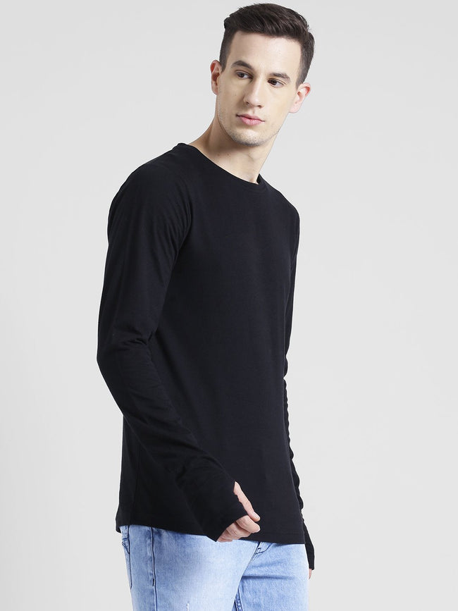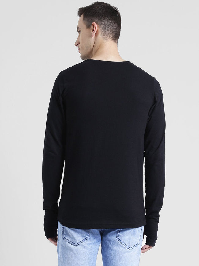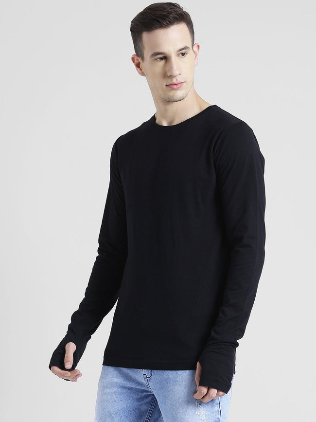 Step out in style with the Men Black Thumbhole Full Sleeve TShirt For Men