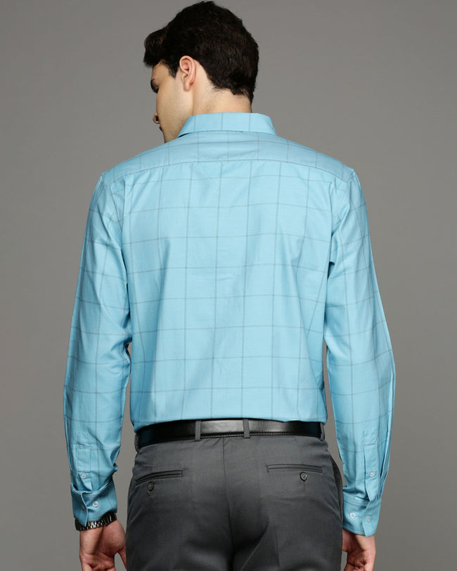 Upgrade your style with Men Blue Cotton Blend Slim Shirt.