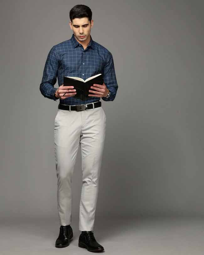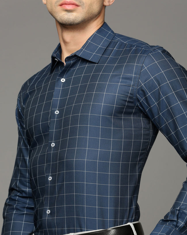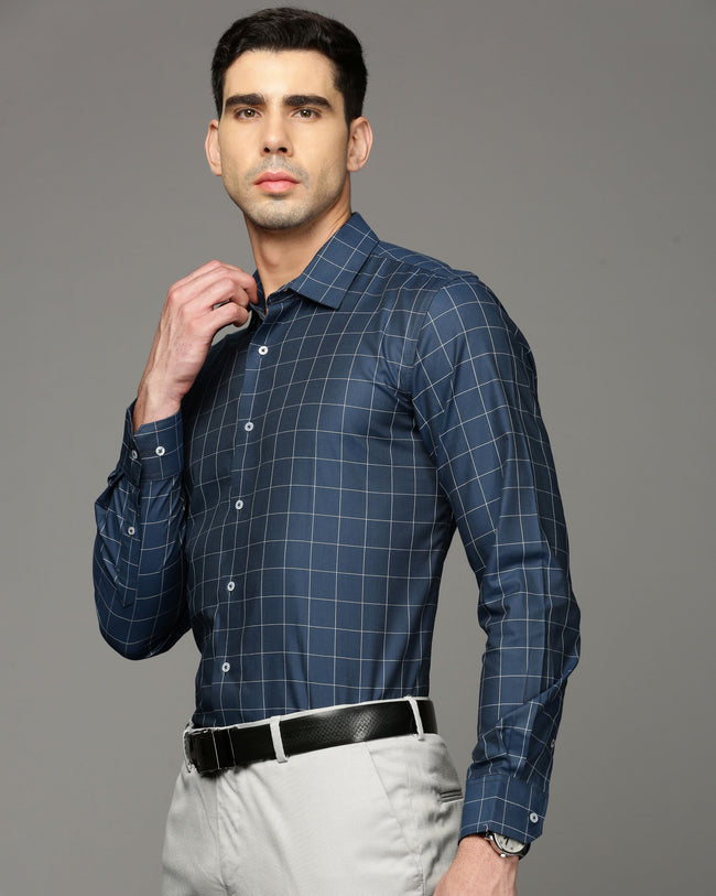 Men Blue Cotton Blend Slim Shirt