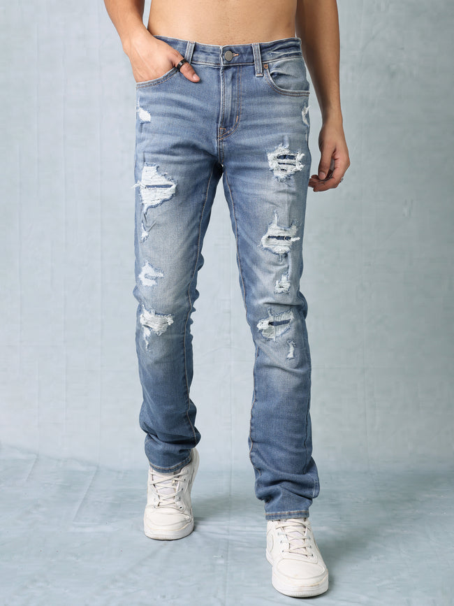 Classic and cool, Men Blue Distressed Jeans provide a rugged edge to your casual collection.