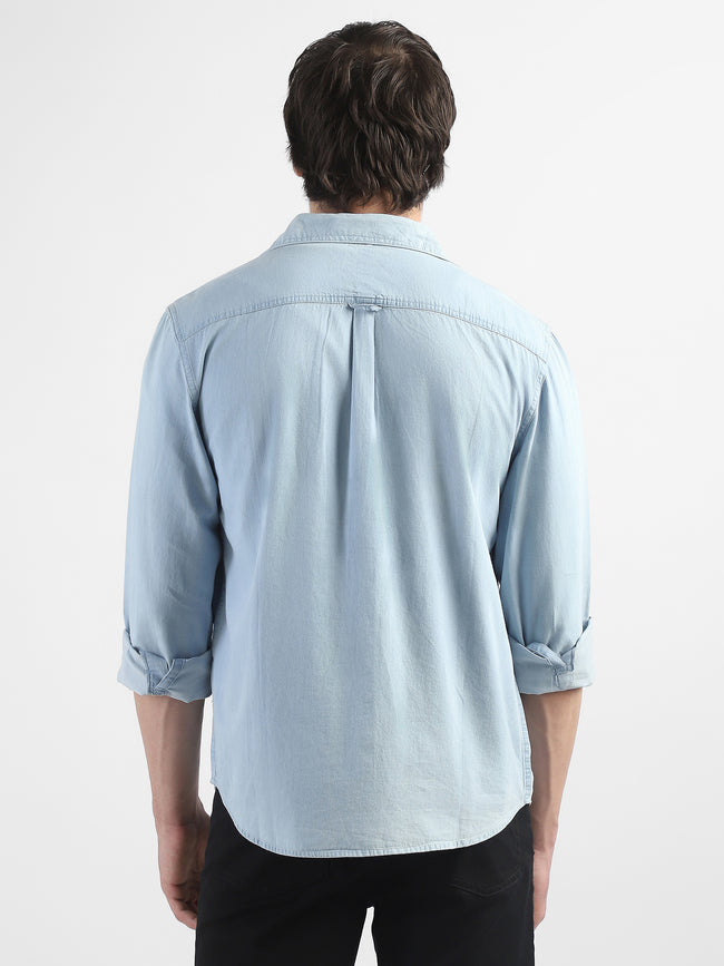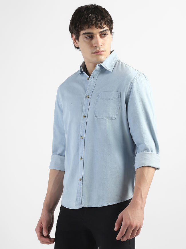 Men Light Blue Denim Casual Shirt