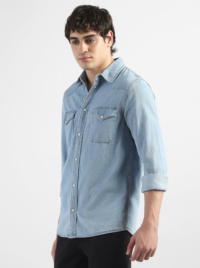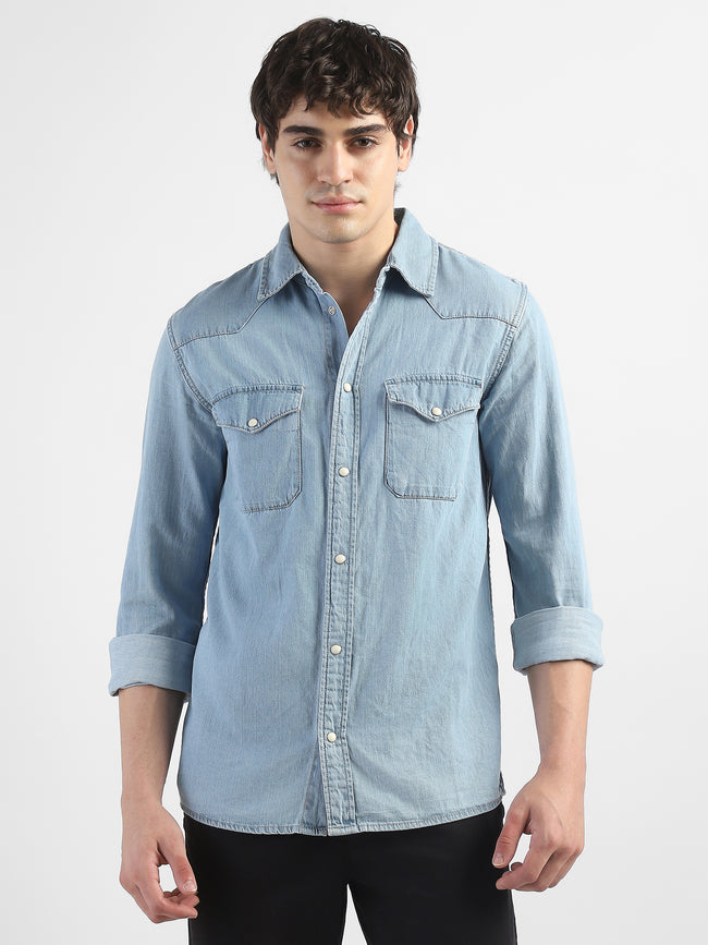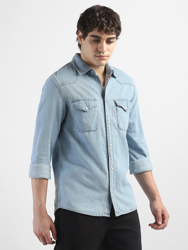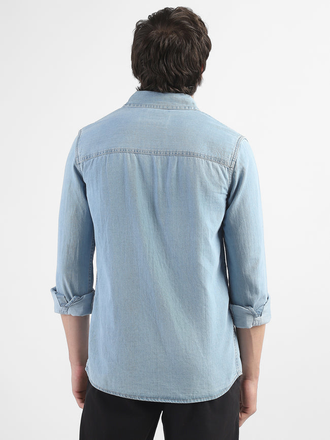 Men Denim Blue Regular Fit Shirt with Two Pockets