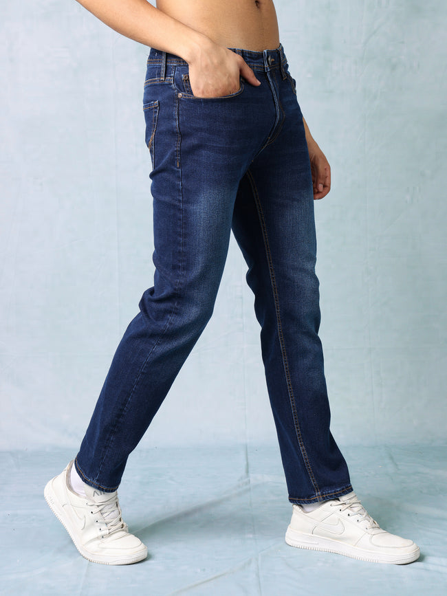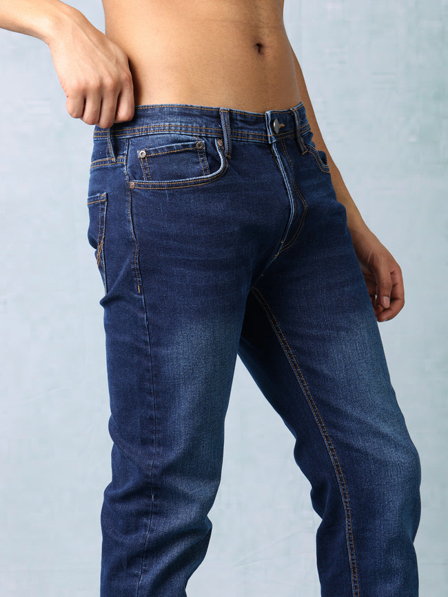 Upgrade your denim game with these Men Blue Slim Fit Mid Rise Jeans. The slim fit and mid-rise design give a sleek and modern look, while the durable denim fabric ensures long-lasting wear. Perfect for any casual or dressed-up outfit. (You'll be the envy of all your friends wearing these jeans!)