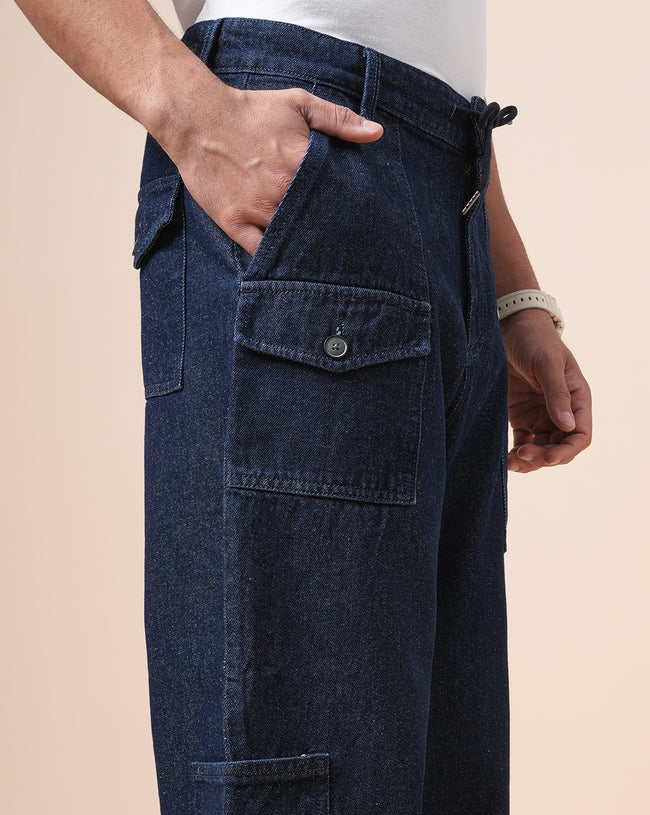 Men Denim Dark Blue cargo pants