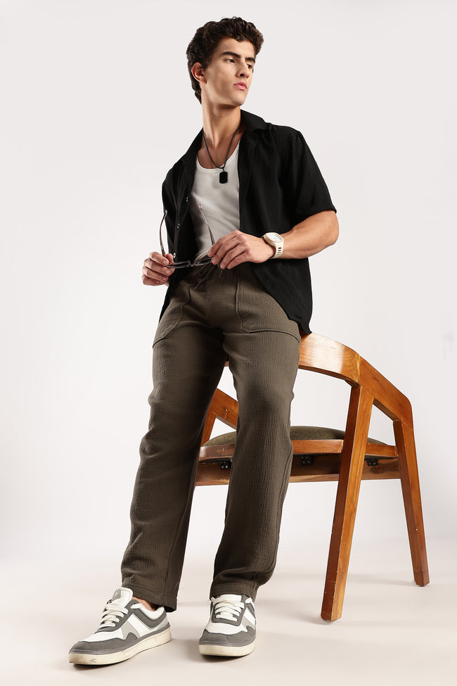 Designed for effortless ease, these beige drawcord trousers redefine casual comfort. Crafted from soft, breathable polyester with a unique textured surface, they offer a relaxed silhouette that moves with you.