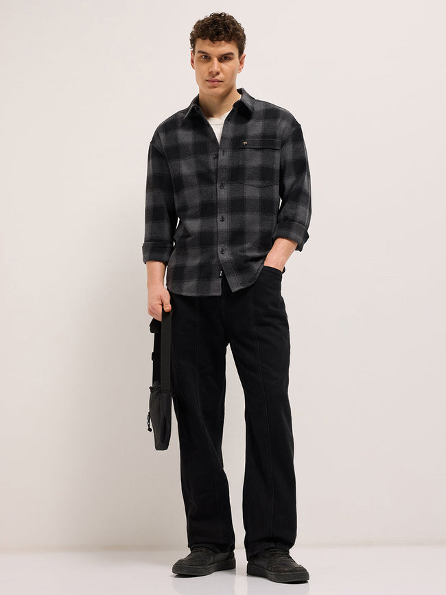 Men Grey & Black Tartan Checked Relaxed Fit Overshirt