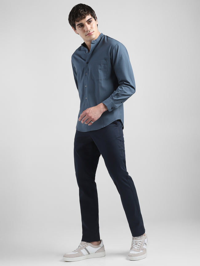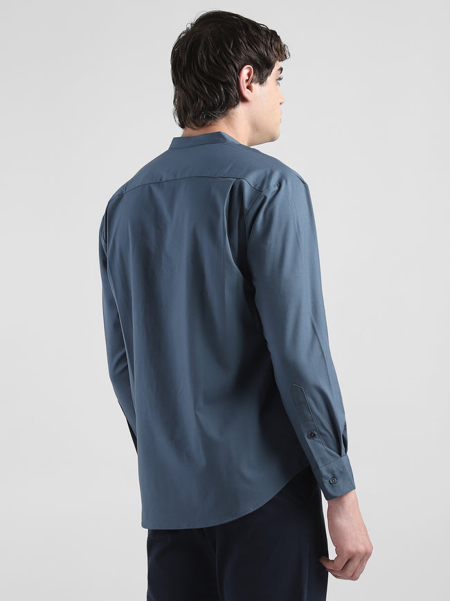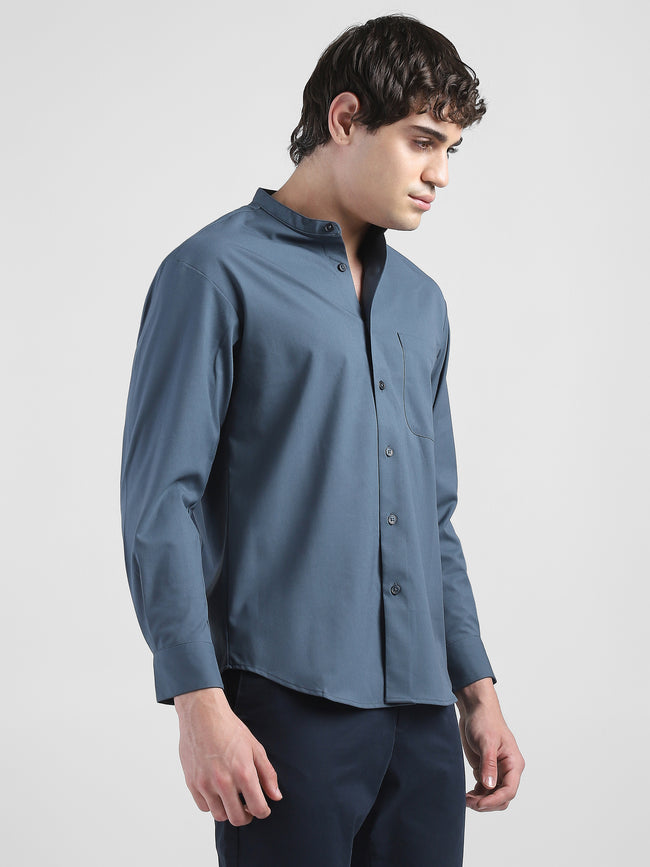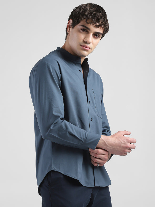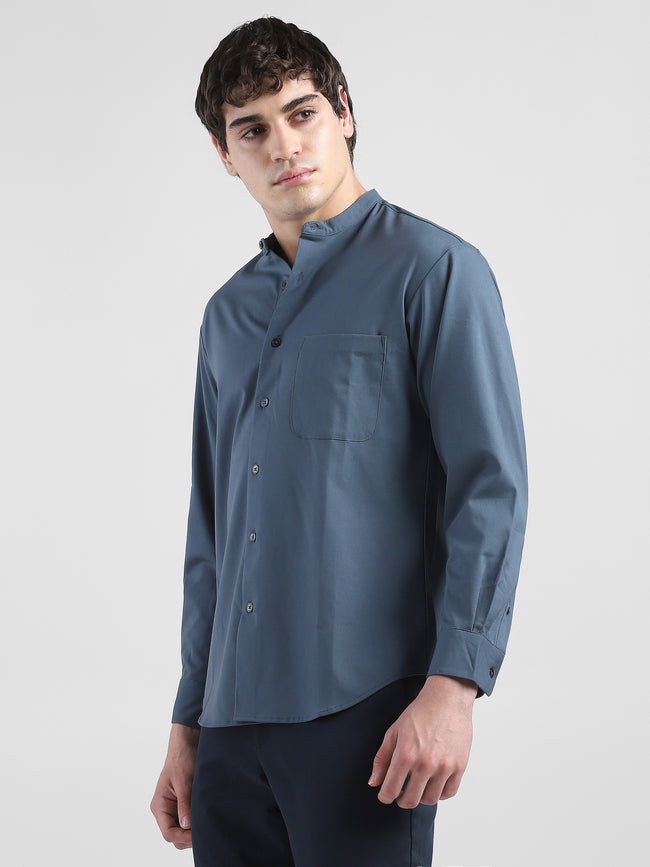 Men Grey Mandarin Collar Regular Fit Shirt