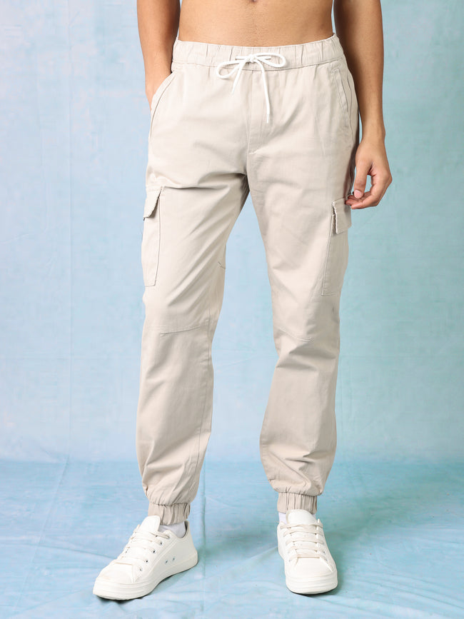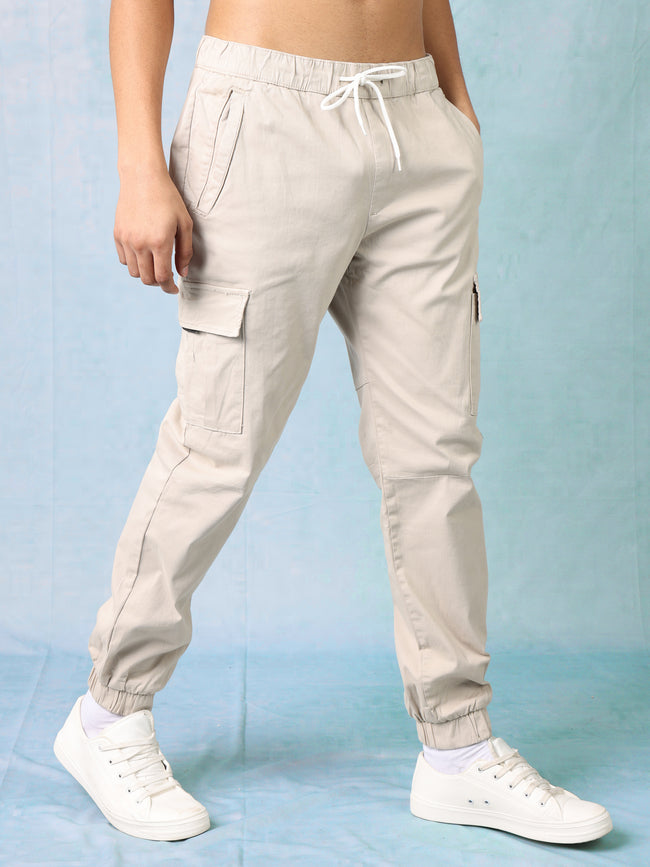 Men Light Beige Mid Rise Cargo Pants
