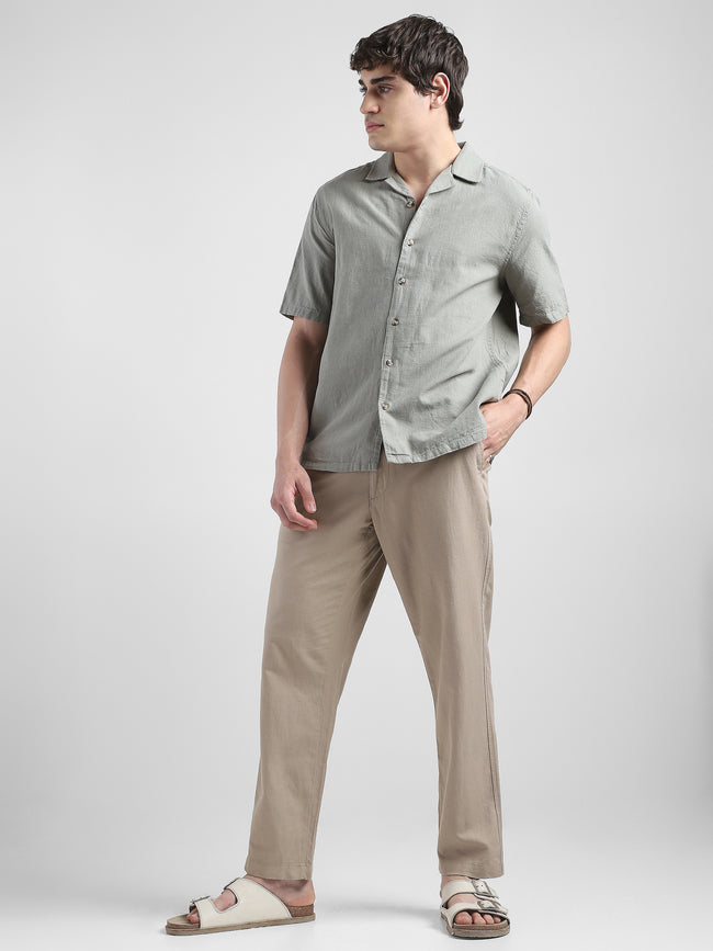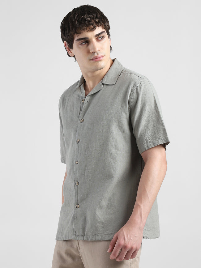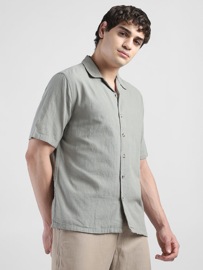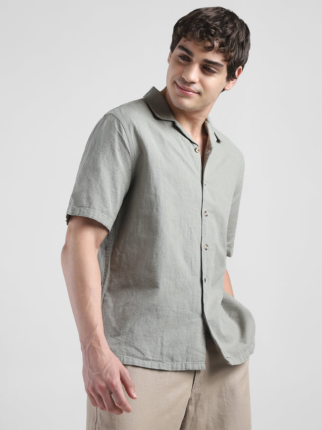 Olive green and ultra-cool. A spread collar shirt for laid-back polish.