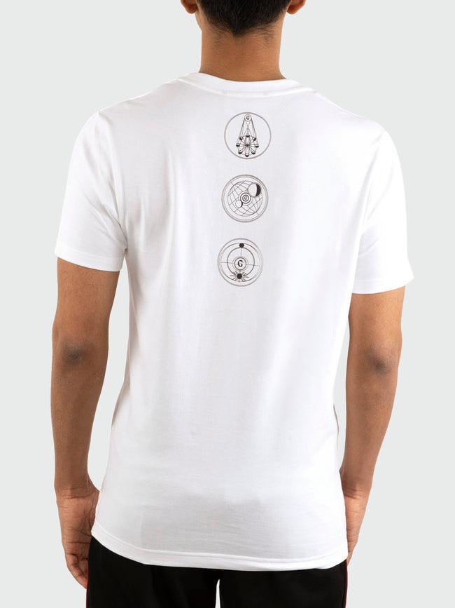 A tonal tencel & cotton t-shirt with a branded monogram print of the zodiac armillary on the front and back of the tee.