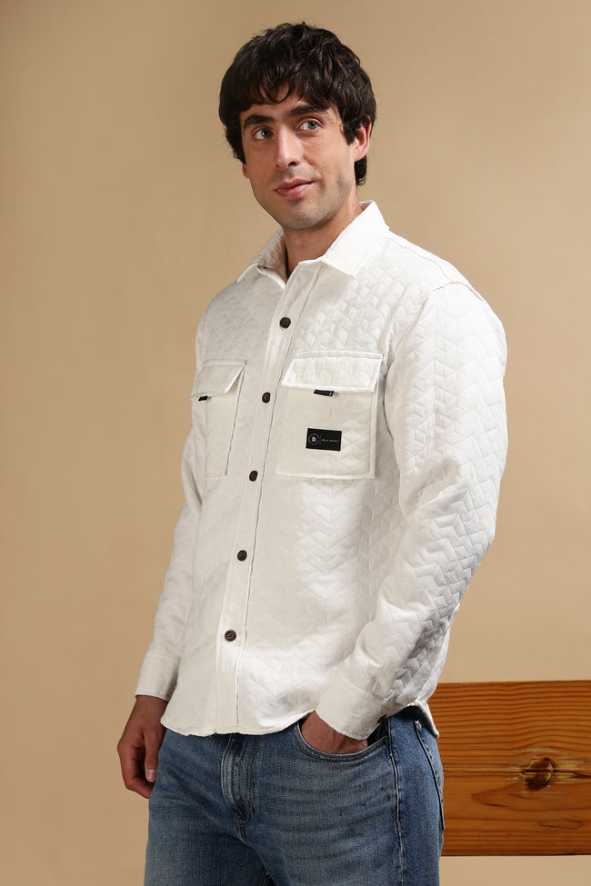 Upgrade your layering game with this versatile shacket shirt, crafted in a durable poly-cotton blend. Designed in a relaxed loose fit, it features two spacious flap pockets on the chest for a utility-inspired look. The button-down front and full sleeves bring in classic shirt detailing, while the heavier texture makes it perfect as a light jacket alternative.