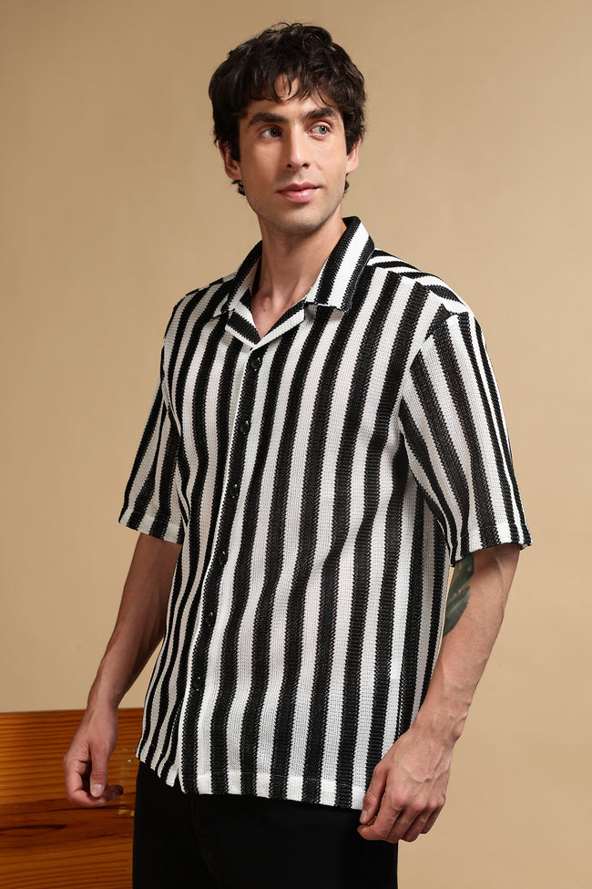 Bring an easygoing edge to your wardrobe with this relaxed-fit striped shirt, crafted in premium polyester Croatia fabric for lightweight comfort and breathability. Designed with bold vertical stripes, this shirt balances retro charm with modern casual styling. The relaxed silhouette and half sleeves make it a versatile piece for warm weather, while the button-down front and open spread collar keep it effortlessly stylish. Perfect for everything from casual hangouts to weekend getaways.