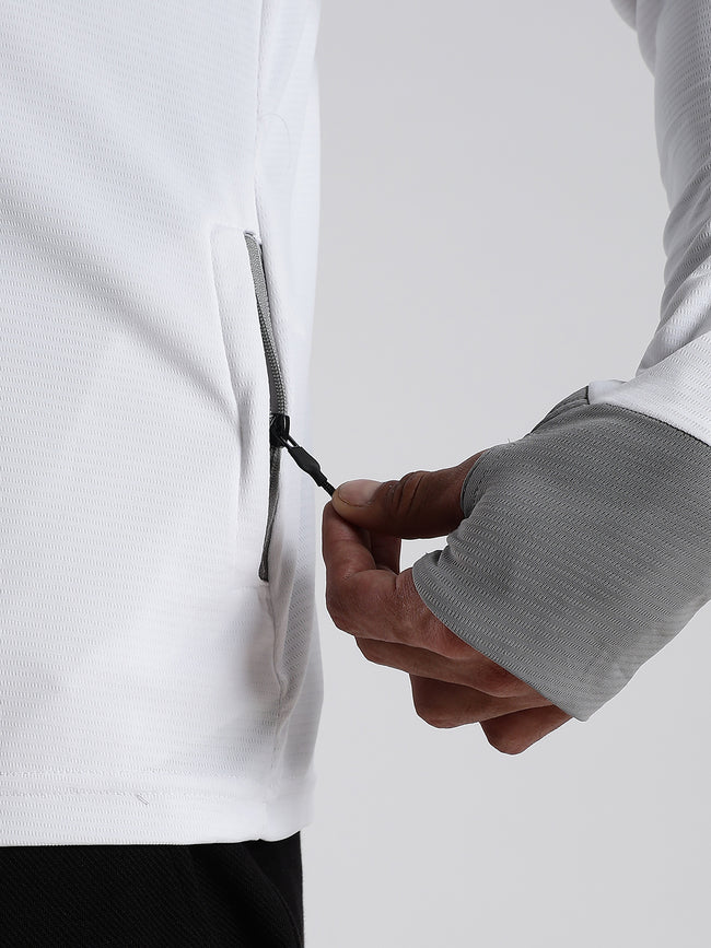 Men White Sunscreen Jacket With UV Protection And Zipper