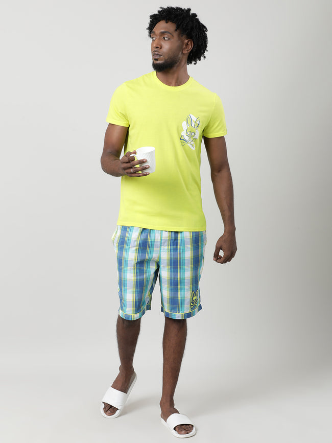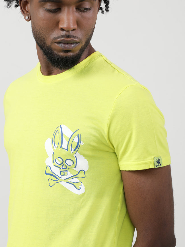 Experience comfort in style with this vibrant yellow round-neck tee featuring a soft fabric and eye-catching graphic print.