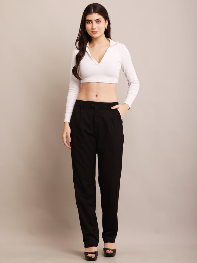 Women's Polyester 2 side pocket Black Full Length Pant Formal , Black, Polyester, , , Pant