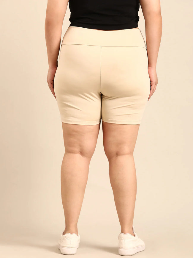 Beige shorties that deliver comfort and simplicity for relaxed dressing