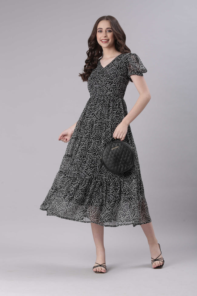 Step into effortless elegance with Souchii’s Black and White Floral Print Maxi Dress for Women, designed to make a statement at every occasion. Made with premium chiffon fabric, this dress blends comfort and style for a breezy, feminine silhouette. The flattering round neckline, three-quarter sleeves, and asymmetrical hem add a modern charm, while the detachable waist belt enhances your shape beautifully.