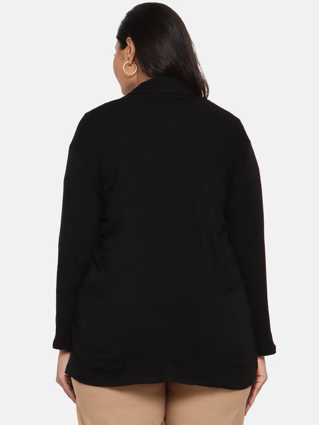 A black shrug designed as a versatile layering piece for casual or dressy outfits