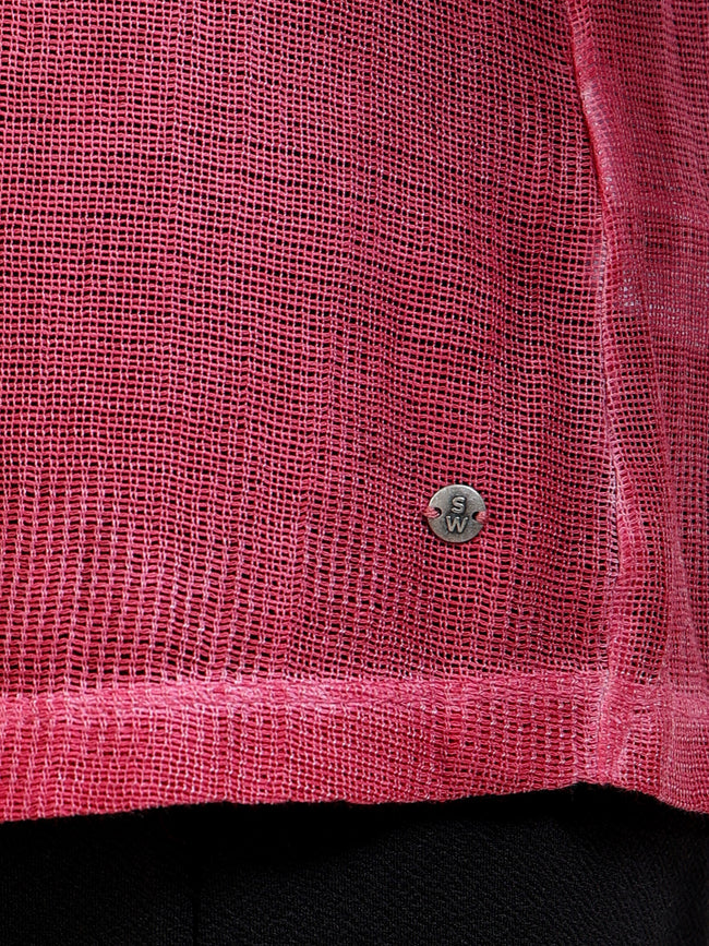 Pink mesh sheer shirt, playful and airy for feminine styling.