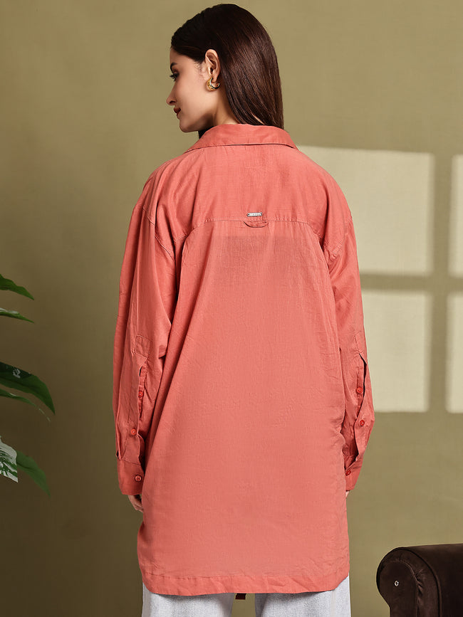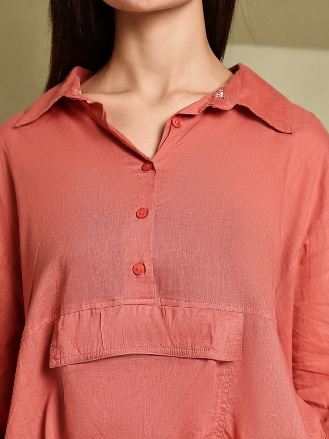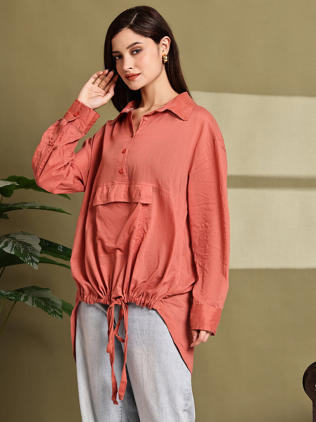 A rust cotton longline shirt with pocket designed for everyday comfort